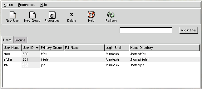 For more information on users and groups, refer to the Official Red Hat Linux Reference Guide.